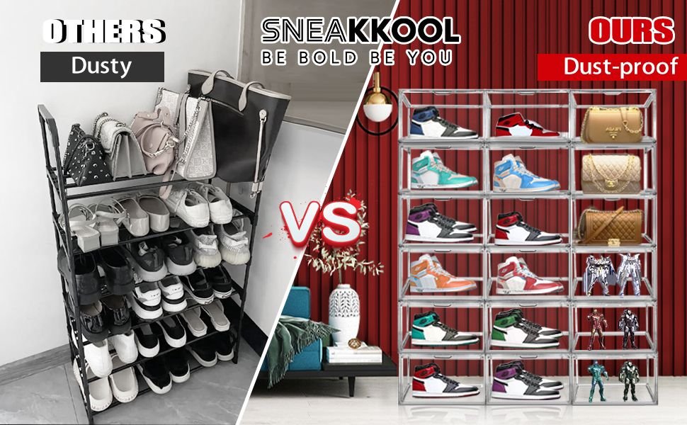 Not at all — Sneakkool Shoe Boxes feature a fully enclosed clip-on design to keep your sneakers dust-free and pristine at all times.